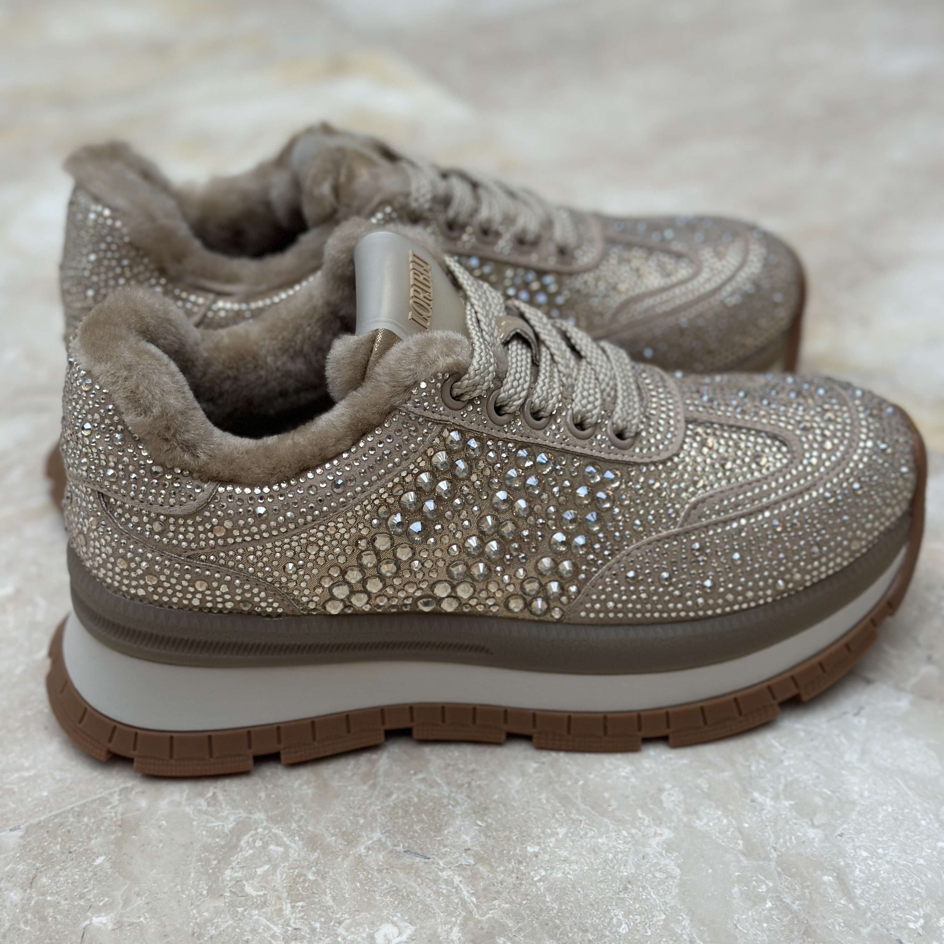 Эти кроссовки Loriblu идеально сочетают комфорт классических кроссовок и стиль спортивной классики. Благодаря натуральной замшевой коже они элегантны и долговечны, а натуральная овчинка обеспечивает тепло и удобство даже при длительных прогулках. Платформа высотой 3,5 см придаст уверенности вашей походке, добавляя высоту без ущерба удобству. Изящные кристаллы подчеркивают изысканный дизайн, созданный в Италии.